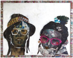 Hitoshi Fujii, „Uccy und Ishida“, Mischtechnik, Collage, 100 x 125 cm;